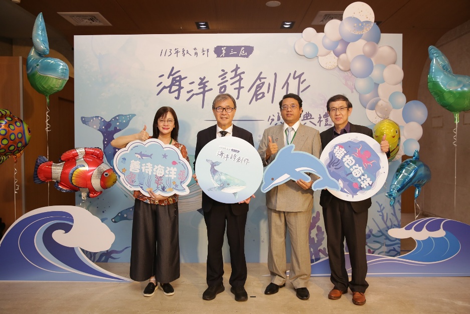 為響應推廣愛護海洋、永續海洋的理念,教育部於113年6月5日於國家圖書館B1多功能展演廳舉辦「第三屆海洋詩創作」頒獎典禮,嘉勉獲獎師生。本屆海洋詩創作徵選以「永續海洋」為主軸,歷經初審、複審及決審三道評選程序,評選出國小組18件、國中組18件、高中組15件、大專組8件及教師組7件,共66件獲獎作品。